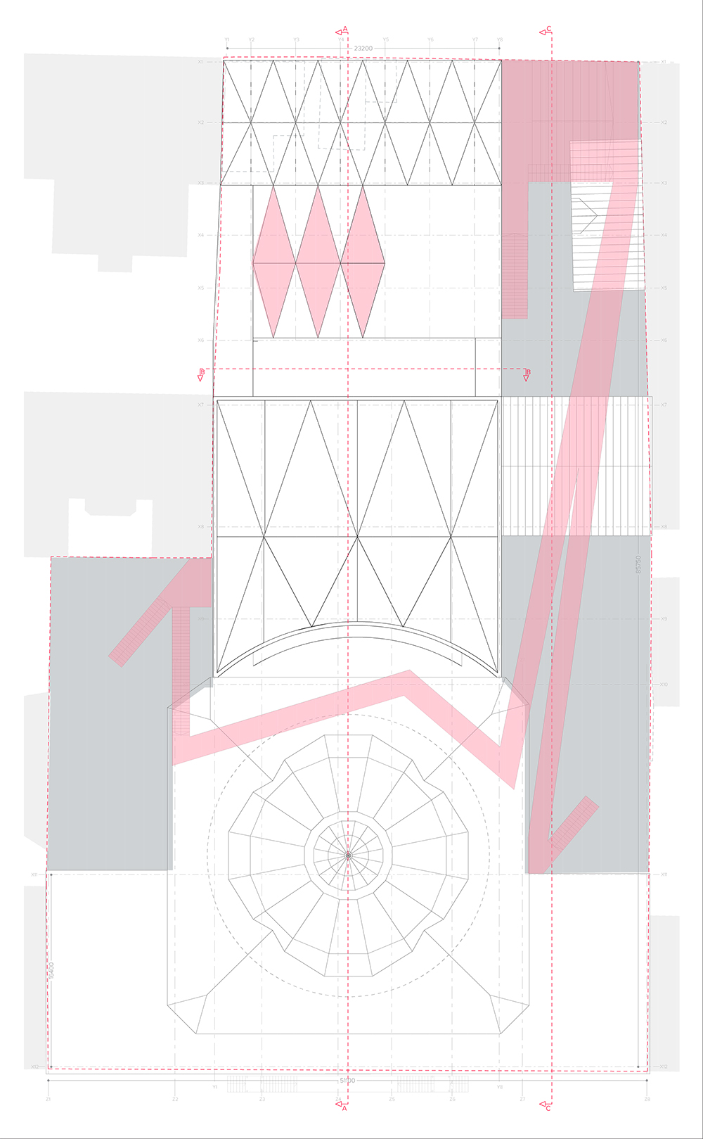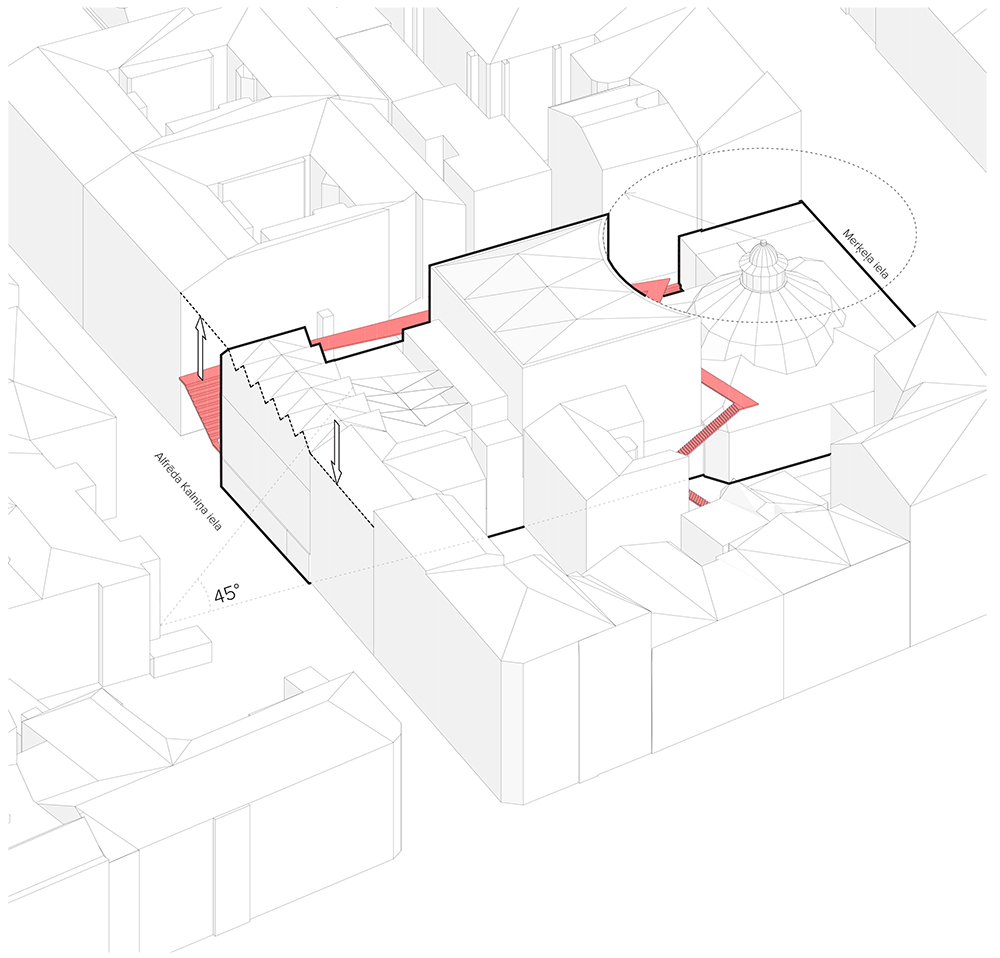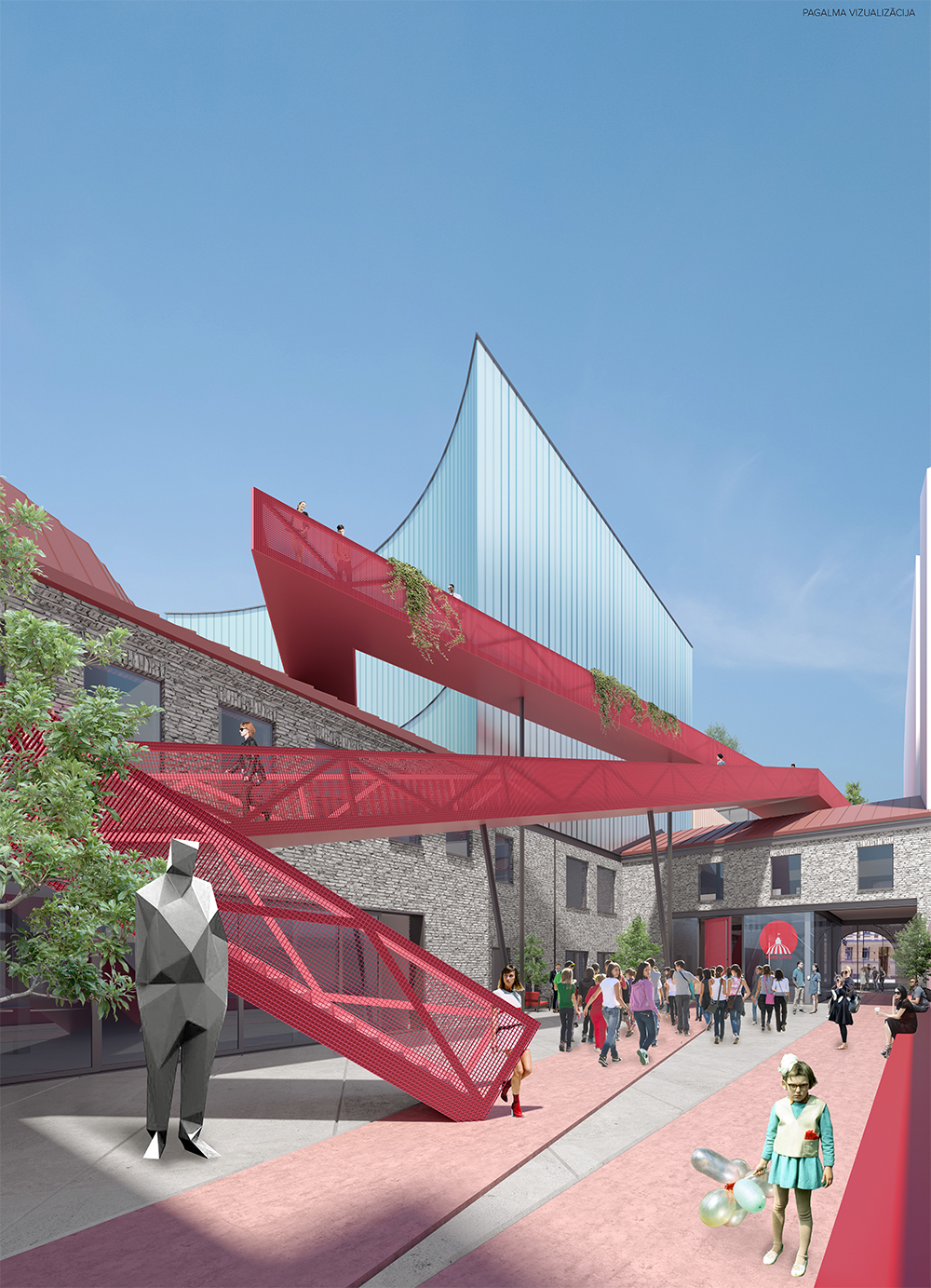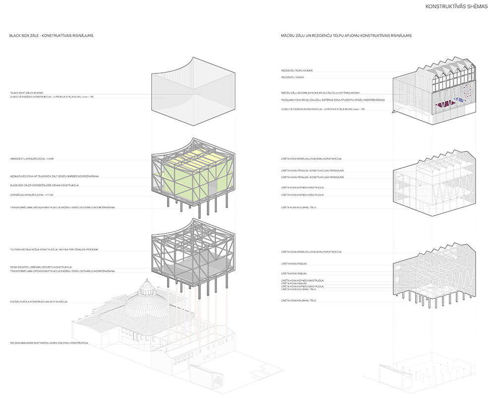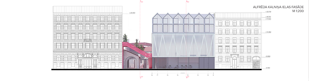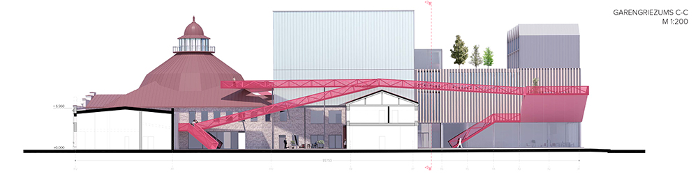 vēsturiskās konstrukcijas, jaunos apjomus integrējot kopējā apbūvē.