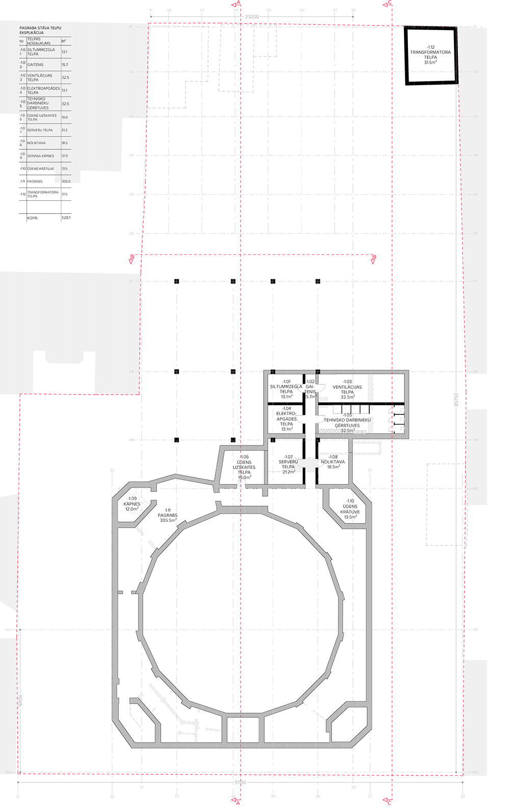 kopējās (bruto) platības 5709.0 m² (pa ēku ārējo perimetru, virszemes apjoms),