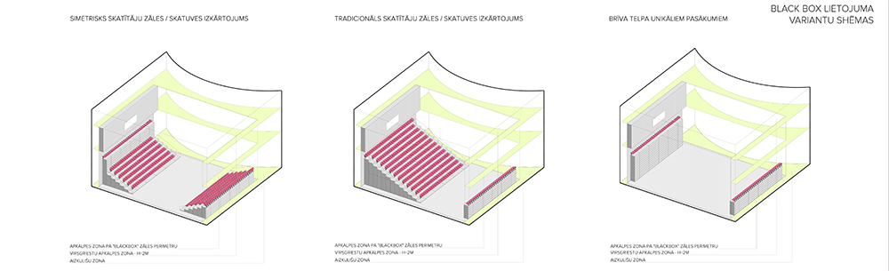 dod iespēju transformēt telpu dažādu izrāžu formātu vajadzībām,