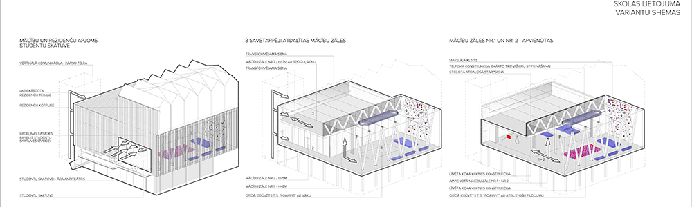 skolas 3 zāles sagrupētas tā, lai būtu iespējams tās vajadzības gadījumā