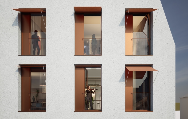 Thanks to the slight curvature of the volumes, each apartment is given its own spatial identity and differentiated views through the windows.